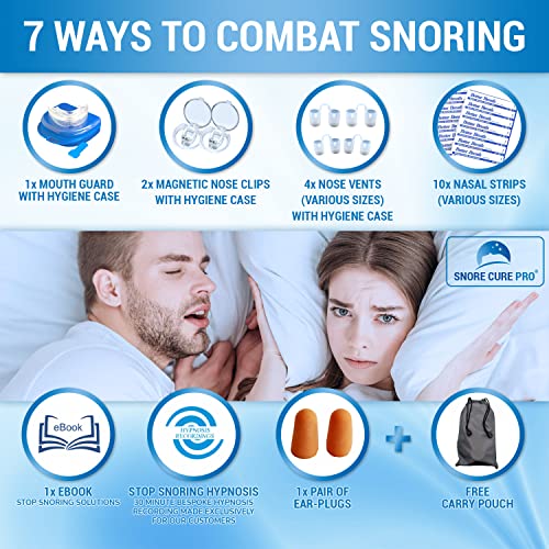 Anti Snore Devices Kit | 1 Mouth Guard | 10 Nasal Strips | 4 Nose Vents | 2 Nose Clips | Ear Plugs | Custom Stop Snoring…