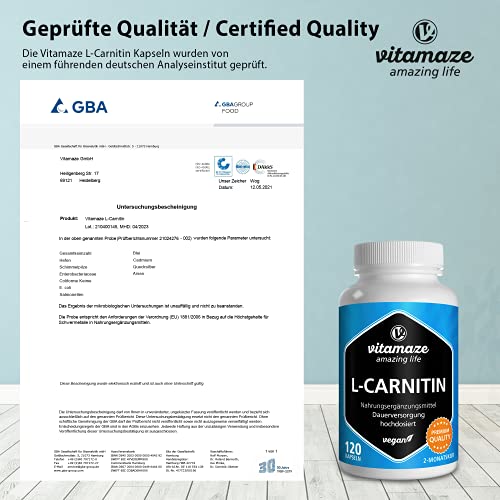 VEGAN: Vitamaze L-Carnitine is made exclusively from non-animal ingredients and is therefore ideal for VEGANERS and VEGETARIANS. Our product is completely free from genetically modified ingredients and any unnecessary additives.